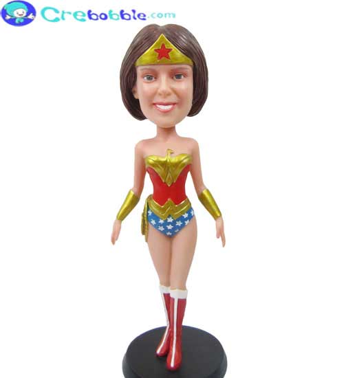 What better way to impress and amuse the strong, warrior woman in your life than to capture her likeness in a personalized bobblehead! Wonderwoman is a symbol of female power and justice, fighting the wicked with her fists and her intellect. With her confident pose and powerful outfit, this is sure to impress the wonderful Wonderwoman in your life!