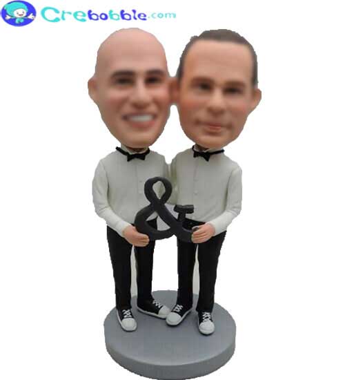 What better way to show your love and support for your same sex friends than to get bobbleheads/cake toppers in their image? You can choose from a variety of outfits to best bring out the beautiful moment you are trying to portray, whether for your significant other or your dear friend. You can choose between gay or lesbian couples, dressed up or dressed down, sitting or standing and even design the hairdo for the special day! From traditional gowns and suits to casual apparel, these fully customizable dolls are the perfect way to showcase your personality.